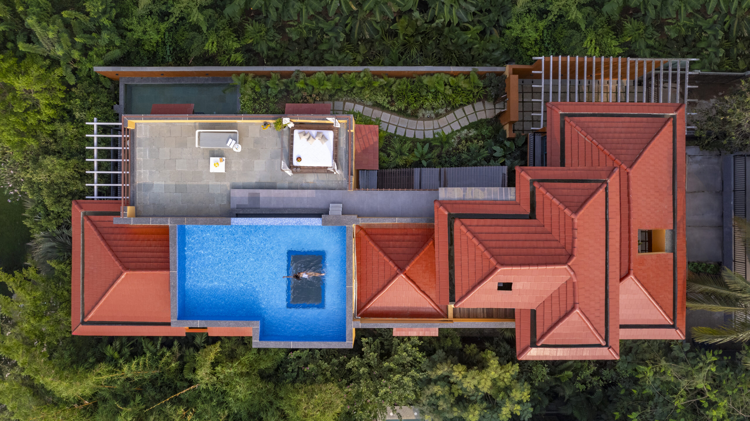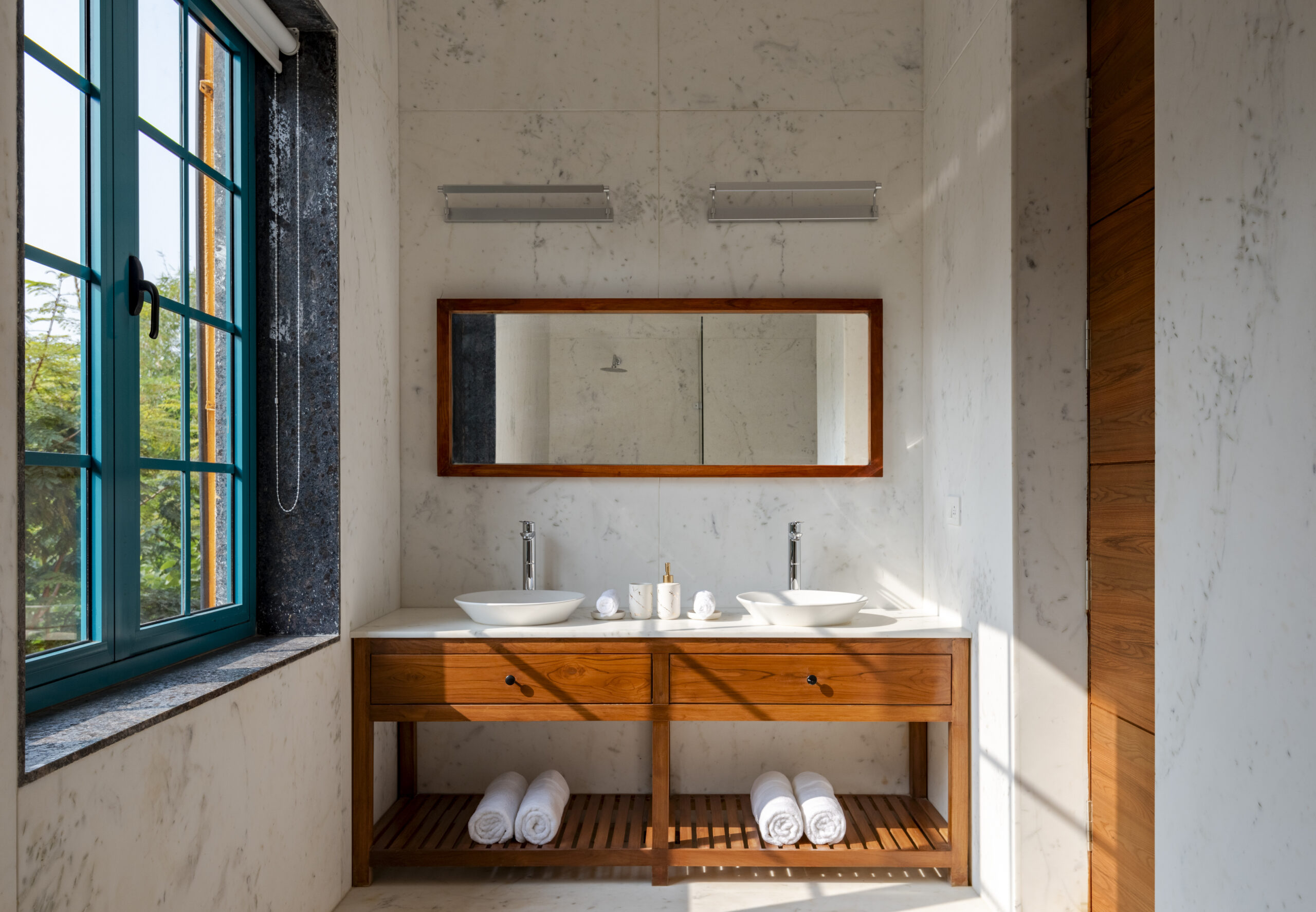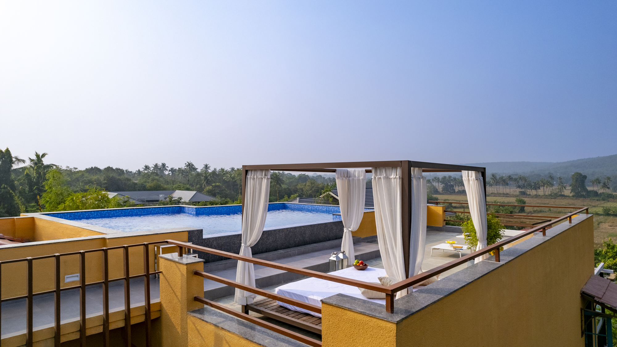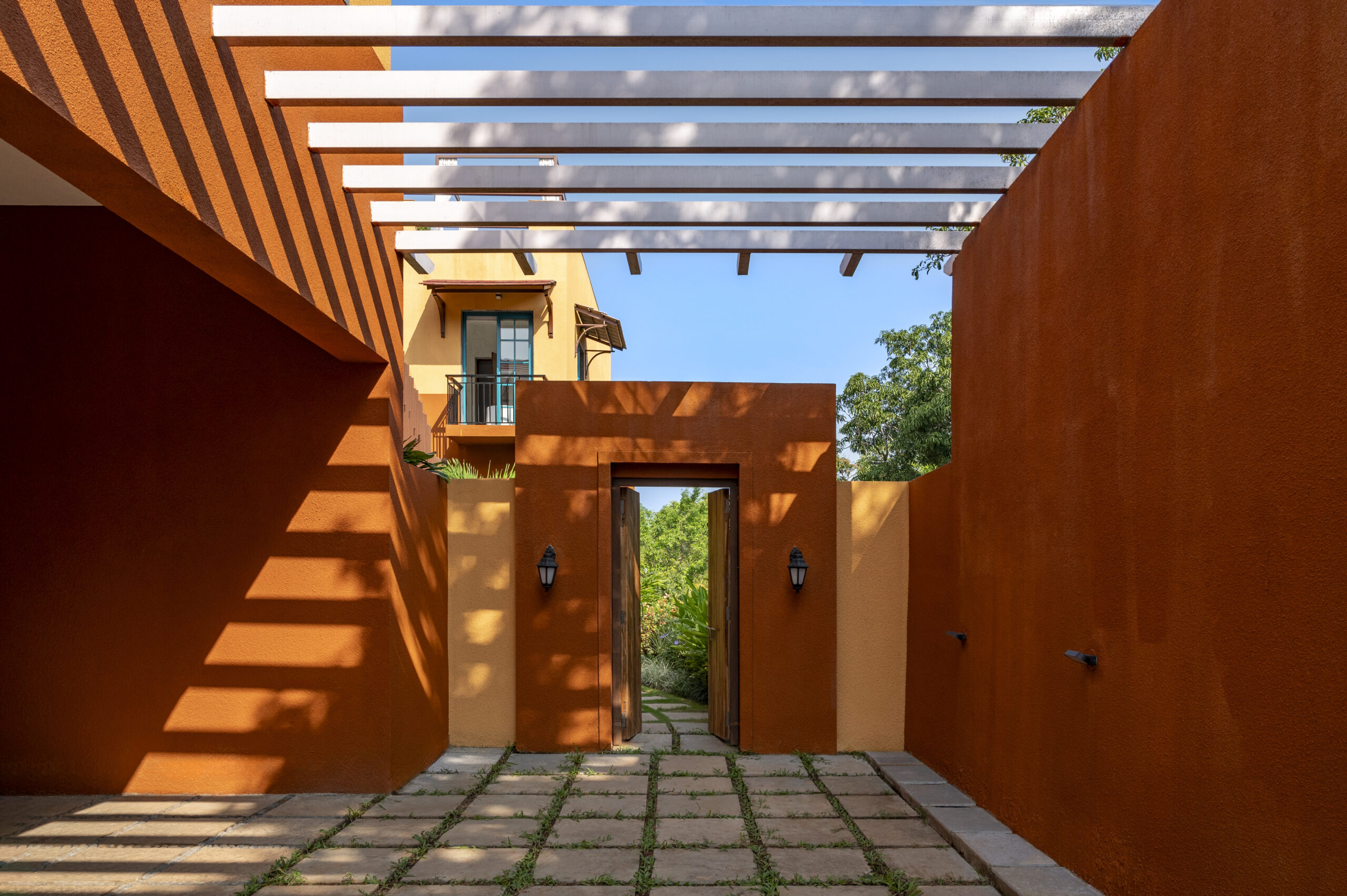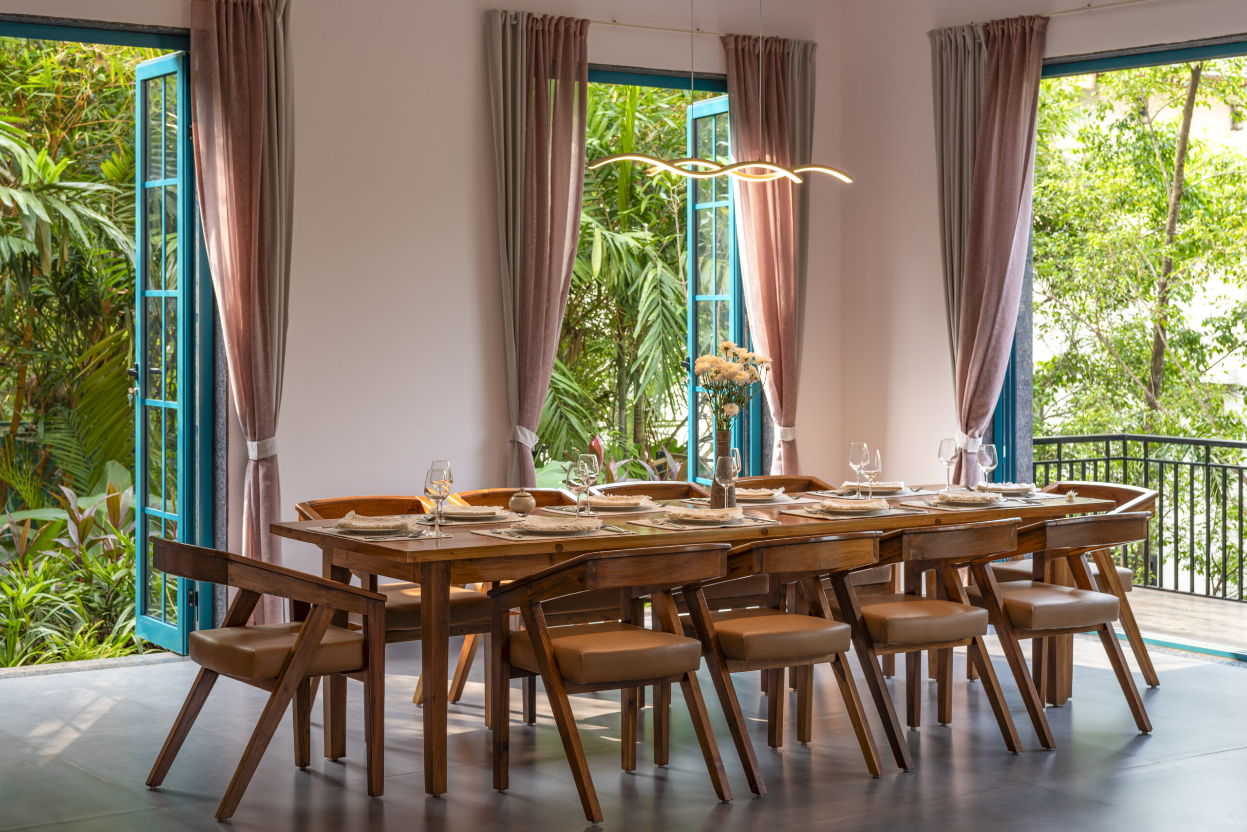 VANA VILLA is our Mediterranean inspired 5-bedroom villa; located in the quaint and luscious green village of Assagao, Goa. Winding country lanes, beautiful Portuguese homes, whitewashed churches and lush fields all around, VANA VILLA has found the perfect address. VANA VILLA is where nature, serenity and comfort come together with VCG signature aesthetics. Spread across 711 sqm, VANA VILLA sits overlooking the lush green paddy fields and the verdant hills surrounding the village of Assagao. The mango trees and lush fields around VANA VILLA have been invited inside with the careful use of semi-outdoor spaces and open-plan layout allowing the natural surroundings to travel through the property. In this luxurious villa, you can sit back and relax as you listen to the birds’ chirp and wind rustle. This piece of art is designed using traditional Indian techniques and infused with Goan-Portuguese and Mediterranean inspired aesthetics.